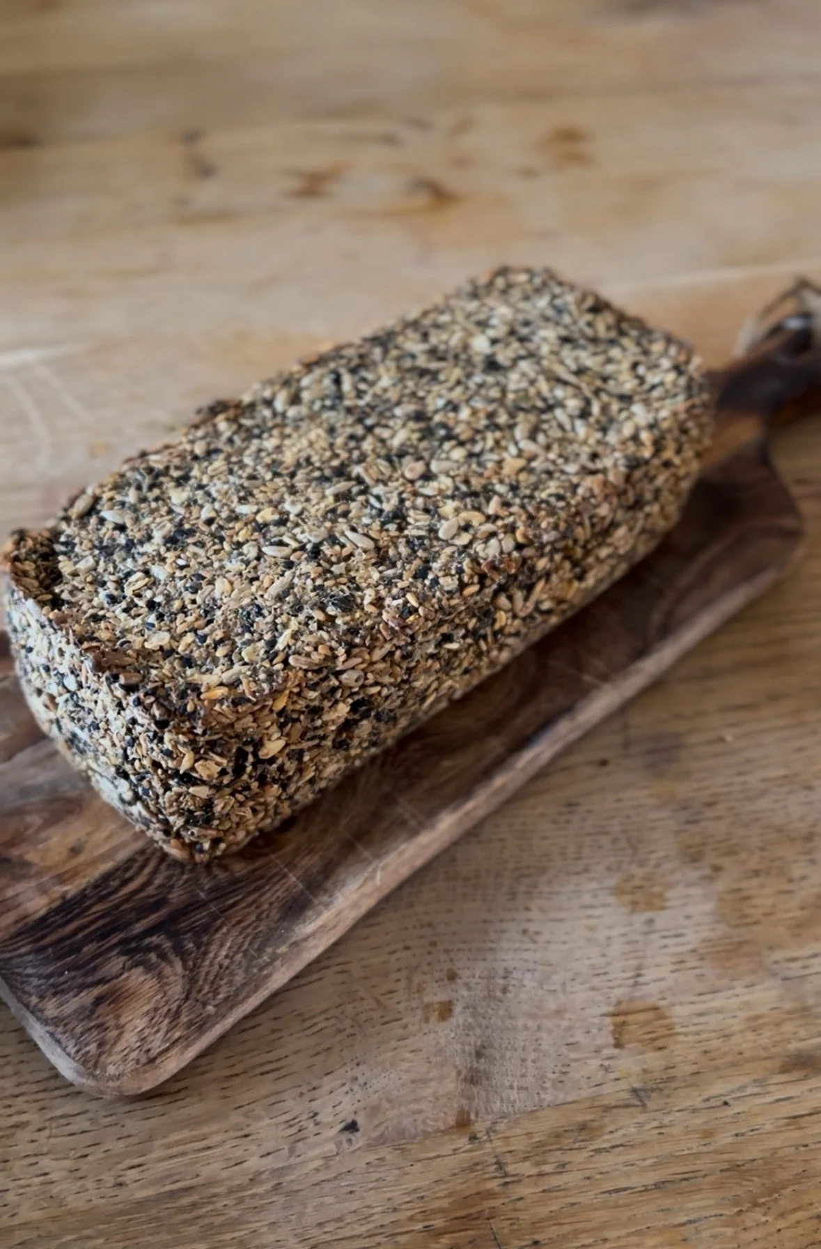 Combine all dry ingredients in a bowl, mix well add the water and coconut oil at the end mix together and leave a few minutes, then place in a silicone loaf tin and leave for at least 20 minutes. Sometimes I leave overnight to fully soak and set. Place in oven on 180c for 25minutes then tip out of silicone or tin onto baking tray and leave in oven for another 35-40 mins. Leave to cool before trying to slice. If you don’t eat it all in one go, slice and wrap individually and freeze. Perfect to pull out and toast a few times and serve with soup or for brunch with toppings of your choice.
