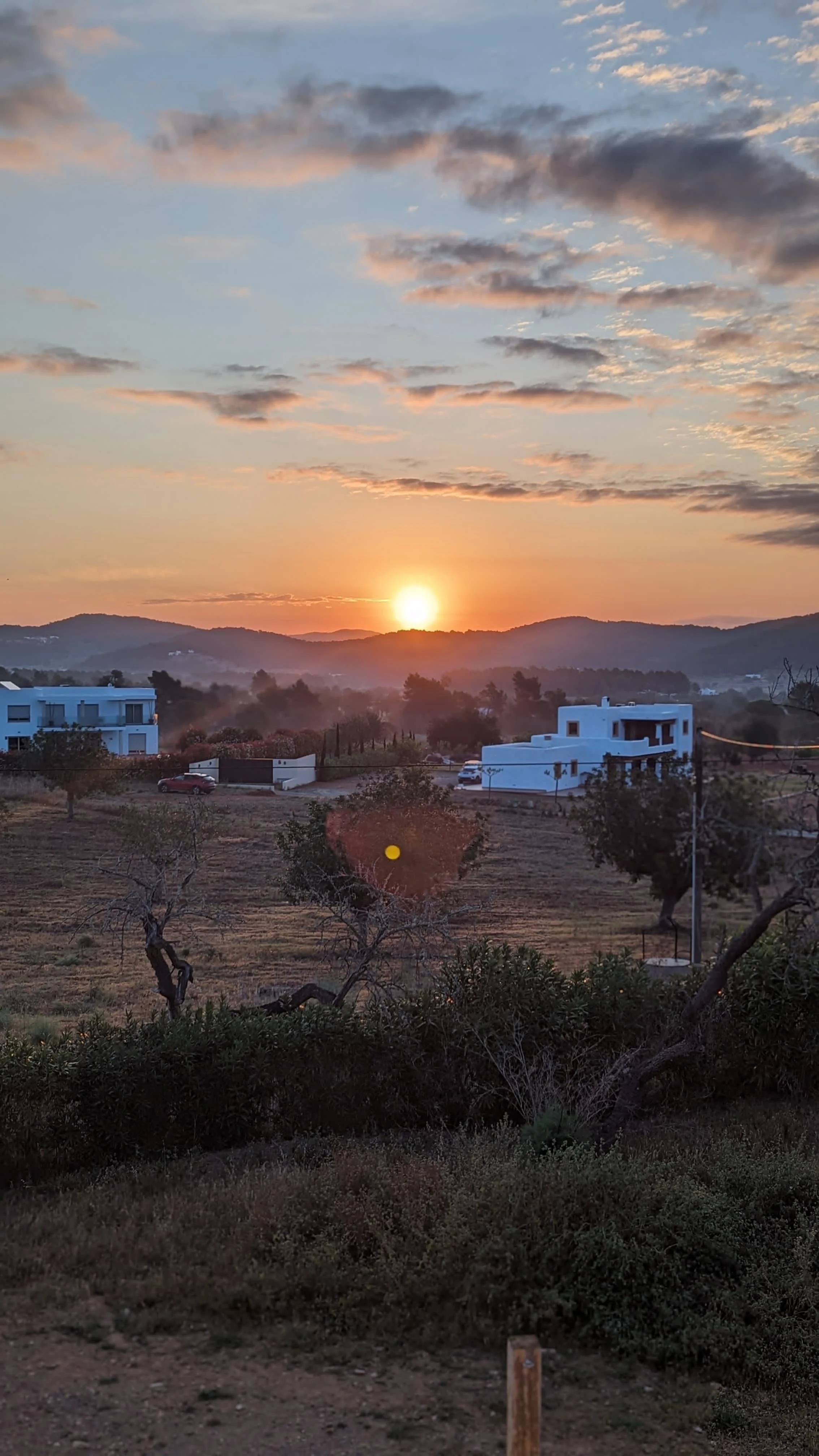 Can Rosa is situated in the agricultural part of the island so very quiet, lovely walks and stunning views across the island from the deck to watch the sunrise.