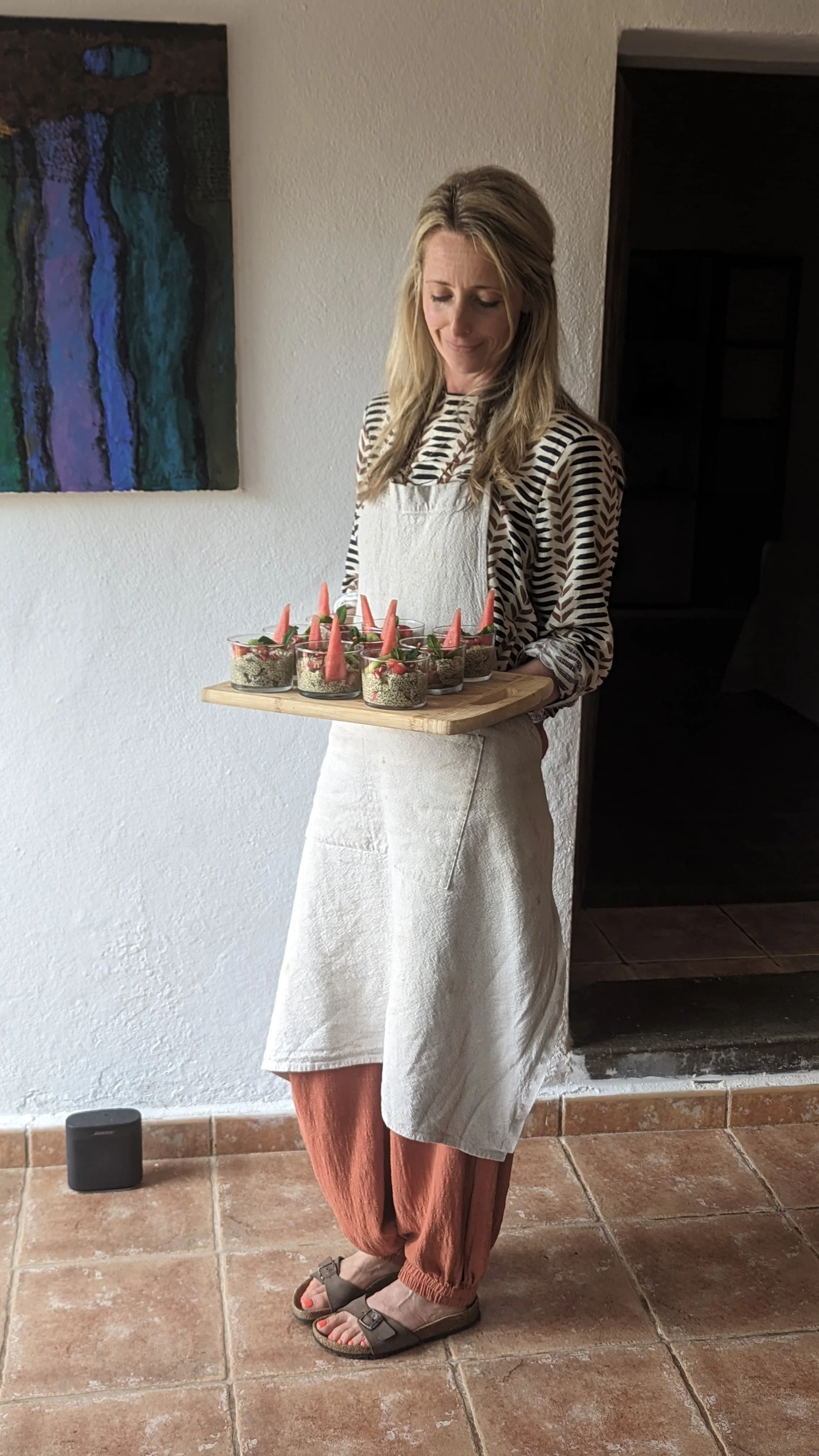 Myself, Katherine the creator of Retreat Remedies. My background is years of working as a healer, massage therapist and energy worker. I trained in Tui Na and worked as a Traditional Chinese Medicine Practitioner, I ran my own busy clinic and absolutely loved it. However it was hard not to over give and I burnt out several times. I suffered with my skin and realised I had damaged my gut from years of breathing in the tea lights I used to burn in my treatment room and so I took to learning how to heal it naturally and cut out all the chemicals that can damage it. I started to infuse apple cider vinegar to help heal my gut and eventually started to make it and sell it. I then began to host gut healing supper clubs as ive always loved to host and cook and this way I could share all of my knowledge to others of how we can do all of this through what we eat. The topics then went on to boosting the immune system and balancing hormones. My herbal tea range and herbal tea mediations grew too. My biggest message is that food is medicine and when we are able to ingest it in a relaxed environment with the empowering knowledge this takes it to another level. I do believe we can heal ourselves through nature and nutrition and I love to create delicious, healthy and wholesome food. and nourish you while on Retreat. I will be offering daily tea meditations using my own tea blends and nourishing you from the inside out. I will also be and offering a remedy workshop inspiring you to put natural ingredients on the outside too. I get to feel truly in my element on retreat, healing, nourshing and empowering you.