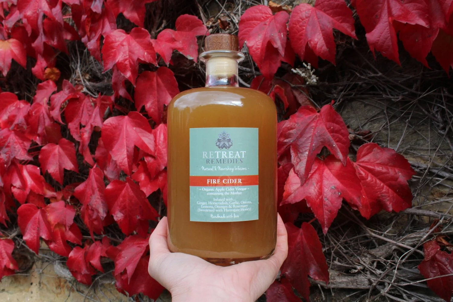 An infusion of fresh ginger, fresh orange, fennel seed, cardamon pods, liquorice root, star anise and clove in organic, unpasteurised, raw Apple Cider Vinegar containing 'The Mother'. The ingredients natural sweeten the Apple Cider Vinegar but a little local Harrogate Honey is also added to take off the remaining sharpe edge and bring more goodness.